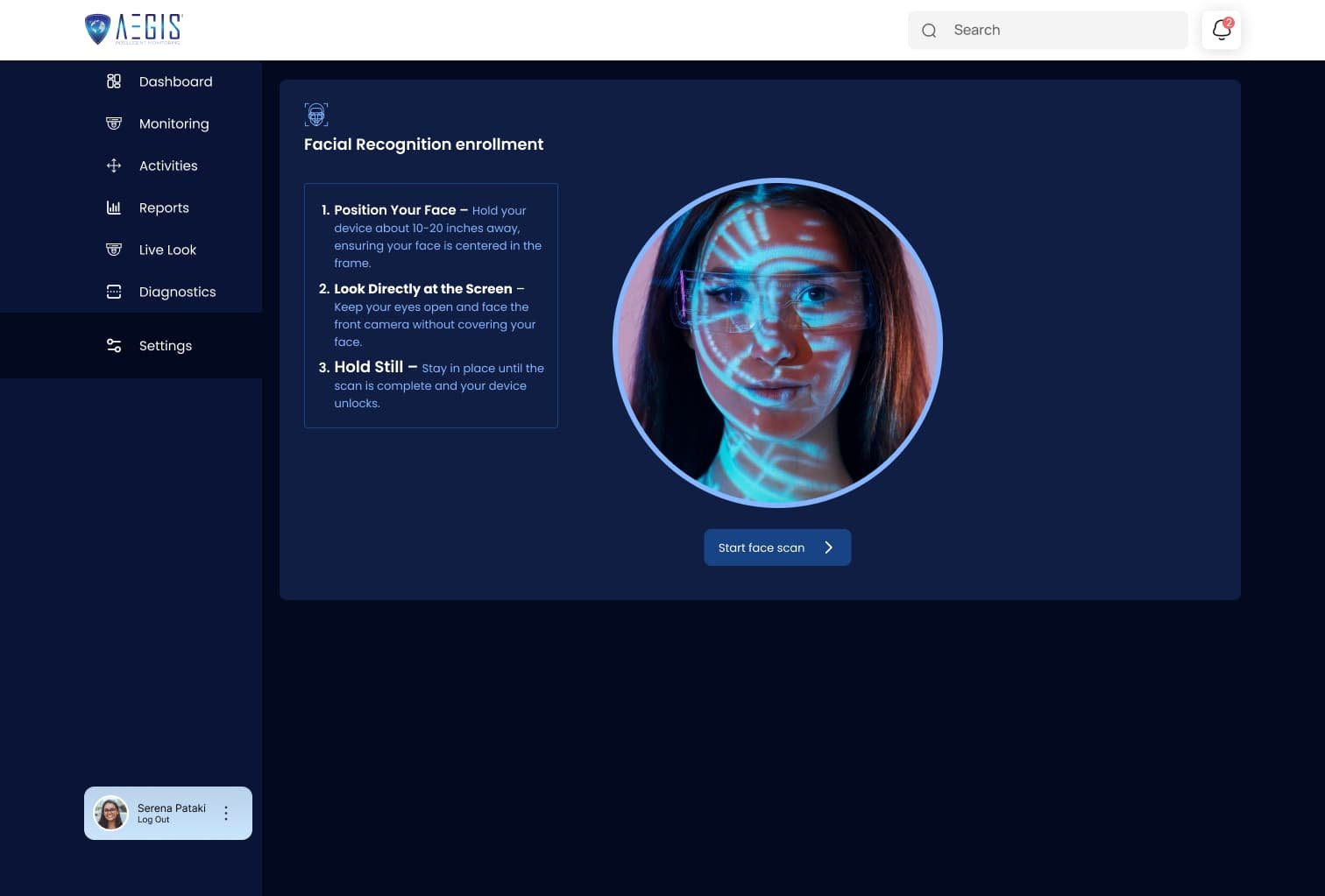 Real-time monitoring dashboard with multi-device connectivity and live camera streaming.