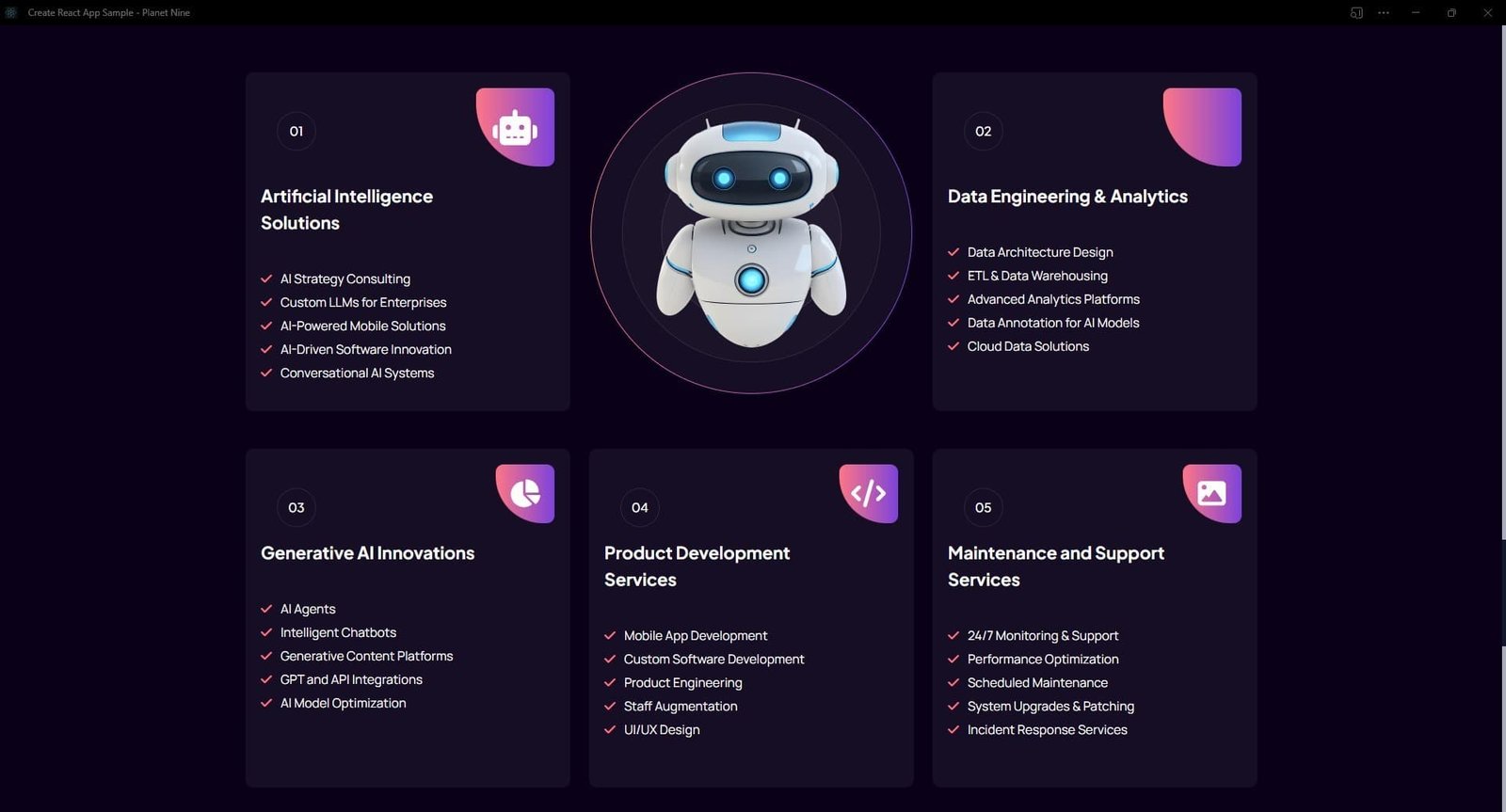 Cutting-edge AI solutions platform with generative AI, data engineering, and product development services.