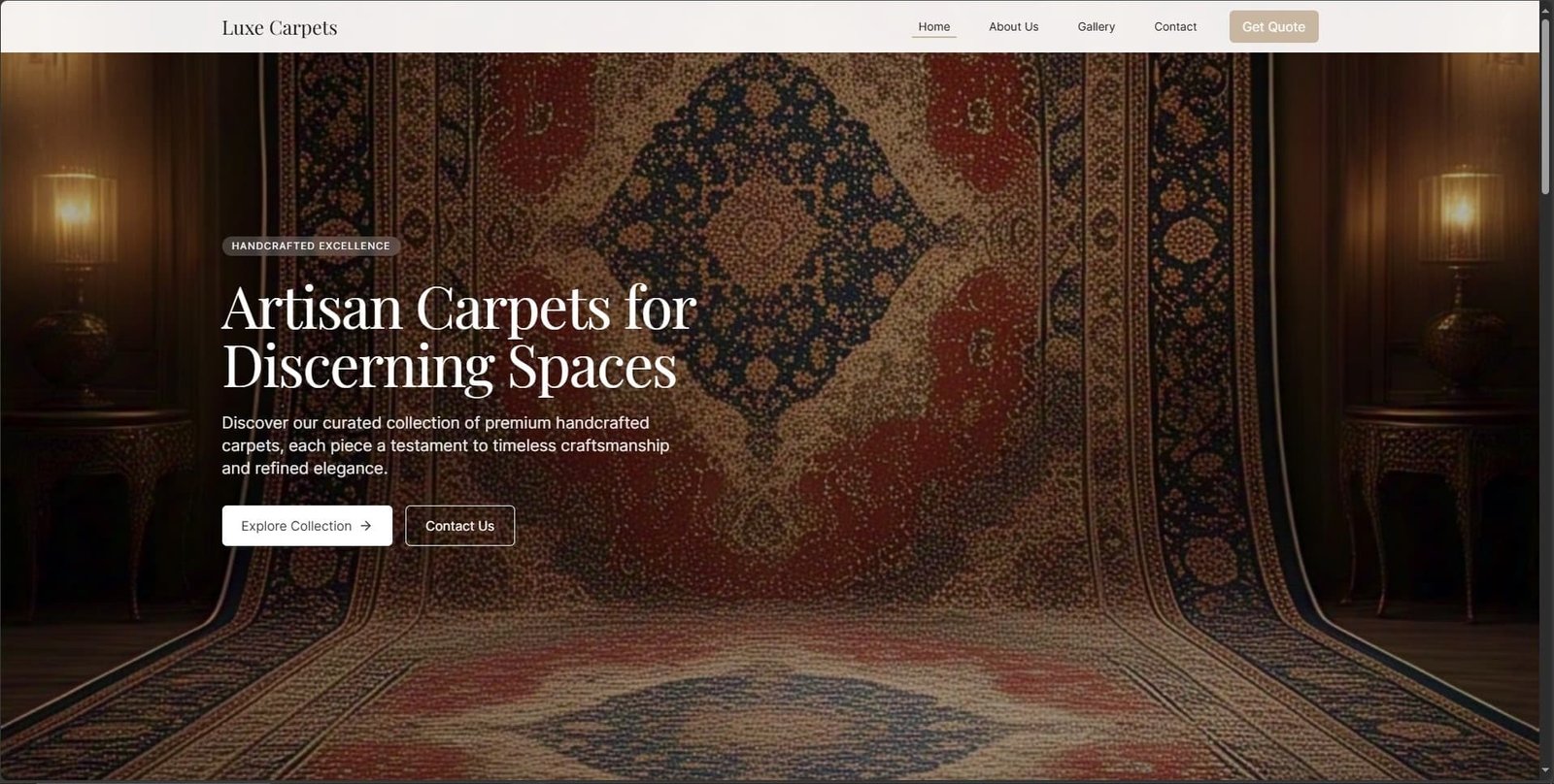 Premium e-commerce platform for handcrafted artisan carpets with category filtering.